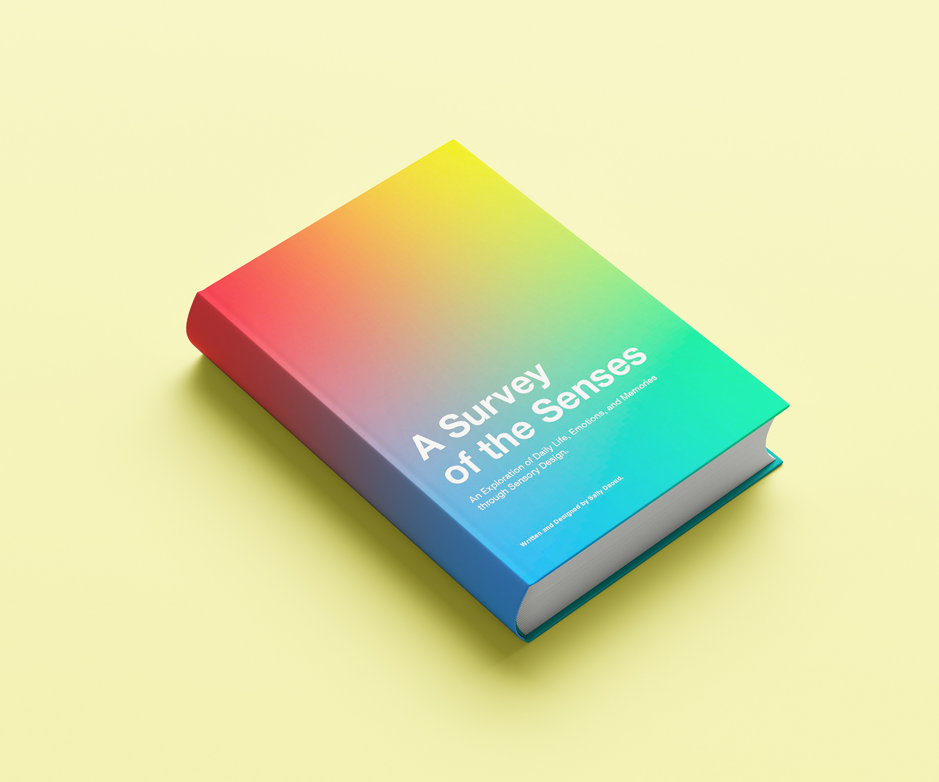 A Survey of the Senses: An Exploration of Daily Life, Emotions, and Memories through Sensory Design is a personal reflection on the role of sensory design in shaping my everyday experiences. Through documenting my daily routines, emotions, and the objects I regularly interact with, this publication examines how design connects with the five senses and influences the way we feel and behave. Created as my senior capstone project, its purpose is to uncover the relationship between sensory engagement and human emotion, revealing how thoughtfully designed experiences can shape memory, perception, and well-being.